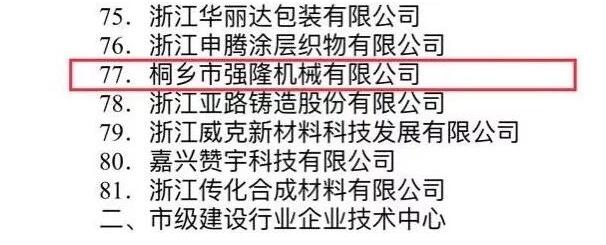 Het Jiaxing Municipal People's Government Office wees er duidelijk op dat, om de innovatiegedreven ontwikkelingsstrategie verder te implementeren, de constructie van technologische innovatiesystemen voor ondernemingen moet worden versterkt, de technologische innovatiemogelijkheden en -niveaus van ondernemingen moeten worden verbeterd en economische transformatie en upgrading moeten worden bevorderd. Daarom heeft de Jiaxing Municipal People's Government 84 ondernemingen beoordeeld als het 2017 Jiaxing Municipal Enterprise Technology Center. Het is een eer dat ons bedrijf - Tongxiang Qianglong Machinery Co., Ltd. op de lijst staat.