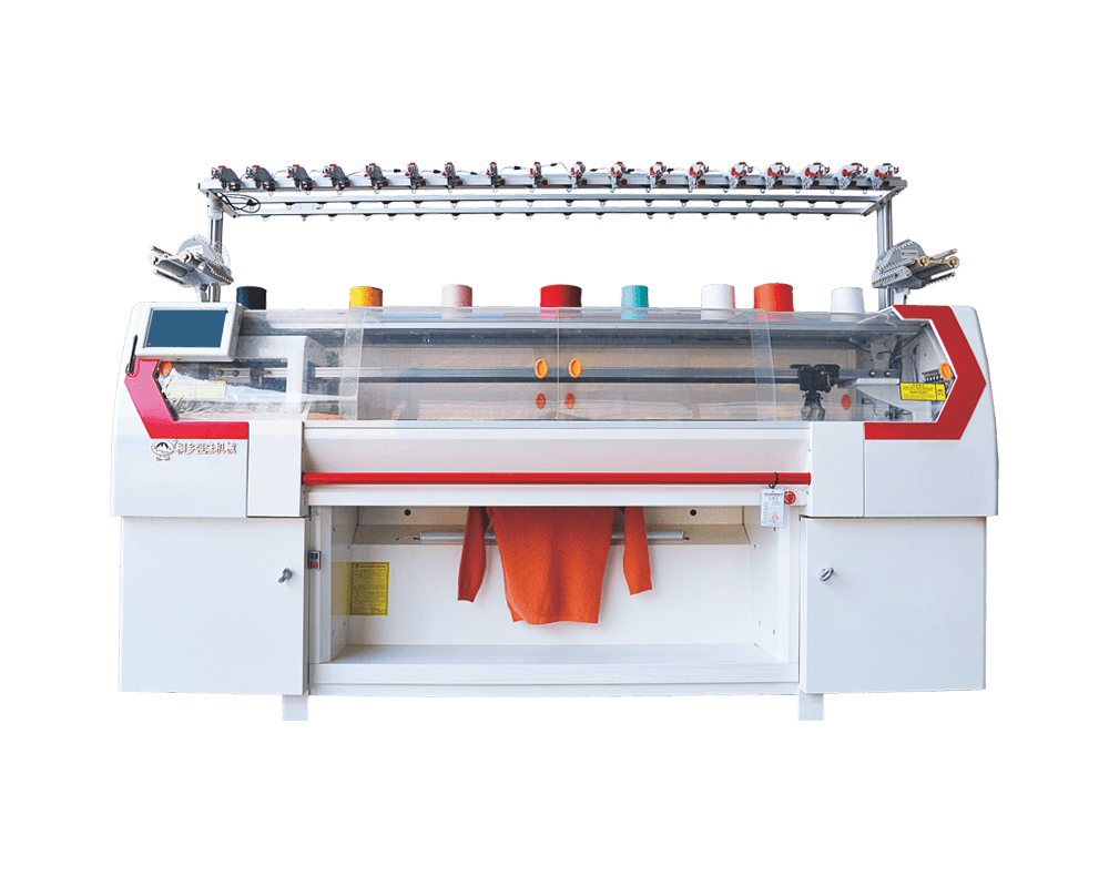 Enkele wagen drie systemen, slimme roller, krachtige zinker, dynamische steek, uitgerust met kamsysteem, gemotoriseerde feeder, adopteer digitale technologie, hoge snelheid en hoge efficiëntie, realiseer plukgaten, plooi, intarsia, volledige naald, jacquard, helder vernauwing, donkere vernauwing en andere breifuncties met onregelmatig patroon. geschikt voor wol, kasjmier, katoen, chemische vezels, pure zijde en verschillende gemengde garens om truien, sjaals, handschoenen, hoeden en gebreide accessoires te produceren.
